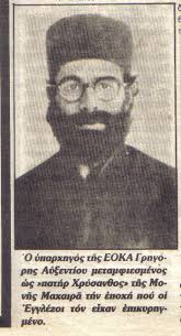 Αυξεντίου παρουσιάστηκε και συστήθηκε στον Άγγλο επικεφαλής αξιωματικό ως ο «πάτερ-Xρύσανθος» και στην συνέχεια τους…κέρασε.
