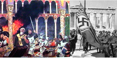 Ωστόσο χρειάστηκε να περάσει ακόμα ενάμισος αιώνας, για να ικανοποιηθεί το 1204 μ.Χ. η επεκτατική μανία των Φραγκολατίνων προς της Ανατολική Ρωμαϊκή Αυτοκρατορία με την πραγματοποίηση της Δ΄ Σταυροφορίας. Τότε τελικά άλωσαν γι πρώτη φορά με το φοβερότερο τρόπο την Πρωτεύουσα της Αυτοκρατορίας, την Κωνσταντινούπολη, κρυμμένοι πίσω από ένα σταυρό, αυτήν την πόλη που ίδρυσε ο Αυτοκράτορας εκείνος που είδε στον ουρανό τον Τίμιο Σταυρό. Όμως το όνειρό τους που καλλιέργησαν εξαρχής για μια ενωμένη Ευρώπη δεν μπόρεσαν να το δουν να γίνεται πραγματικότητα, πριν έρθει η σημερινή εποχή που ζούμε τώρα, όπου ικανοποιούνται να μας βλέπουν υποταγμένους κάτω από τα σκληρά οικονομικά μέτρα που κατάφεραν με τη βοήθεια των ίδιων των δικών μας ηγετών να λαμβάνουν εις βάρος μας. Ας τους καταλάβουμε λοιπόν καλά, κι αν ζητούμε να μη ζούμε σαν σκλάβοι δικοί τους, ακόμα κι αν αυτοί που έχουν βρεθεί στην ηγεσία του τόπου μας κατευθύνουν το τόπο μας υπακούοντας στα κελεύσματα των οικονομικών αυτών κατακτητών, ας υπερασπιστούμε την αλήθεια της ιστορίας μας και της πίστης μας, κάτω από το όνομα της Ρωμιοσύνης, που μας ενώνει όσους λαούς έχουμε κοινή πίστη και ιστορία, από τον καιρό που ζήσαμε μαζί στην Ρωμαίική Αυτοκρατορία. Το φως δεν μπορεί να κρυφτεί, αλλά διαλύει το σκοτάδι. Ας φωτιζόμαστε με αυτό, για να μην ντροπιαστούμε σαν αυτούς που κρύβονται μέσα στο σκοτάδι μη θέλοντας να τους βλέπει το φως, το οποίο σκοτάδι όμως θα διαλυθεί τελικά από το φως, που είναι η αλήθεια.